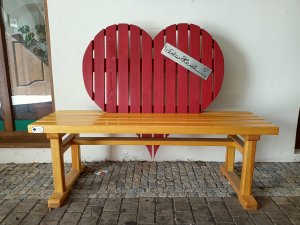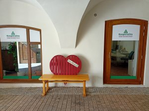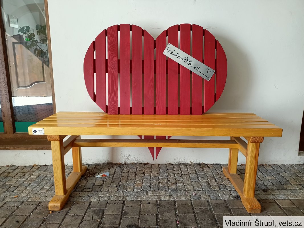 Lavičku vyrobili studenti místní Vyšší odborné školy a Střední průmyslové školy v r. 2021.