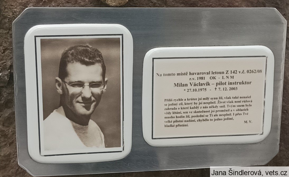Na tomto místě havaroval letoun Z 142 v. č. 0262/08